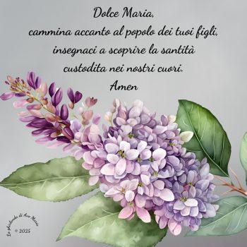 Raccolta di Preghiere9dt3vn2024-07-10T11:39:21+02:00 Raccolta di Preghiere Sollevaci con dolcezza Accorri in nostro aiuto Insegnaci a scoprire la santità Donaci mitezza e umiltà Insegnaci a ripartire Aiutaci a portare la croce Rasserena i cuori inquieti Accoglici nel Tuo cuore Apri i nostri cuori Assisti la nostra anima Trasforma, illumina e guida la mia vita Mostraci la via da seguire Illumina la mente dei nostri figli Il Tuo passo davanti al nostro Dona la fede ai nostri figli Donaci la pace frutto del perdono Fai germogliare il bello e il buono Dio ci vuole bene, ci conosce e ci sostiene Una scintilla d’amore dalla fiamma del Signore Asciuga le nostre lacrime Guarisci le ferite del nostro cuore Prendici tra le Tue braccia Beato chi soffre
